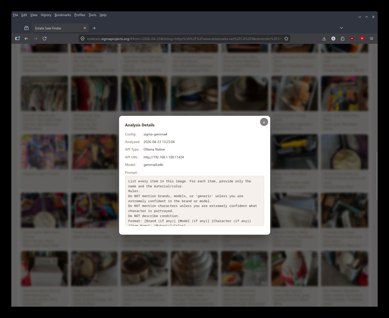 What makes it stand out is that it then passes those sale photos through an AI vision model (like ChatGPT or in our case, locally-run AI) to analyze the images. This could help you quickly identify whether items at a sale are worth your time before you ever leave the house.